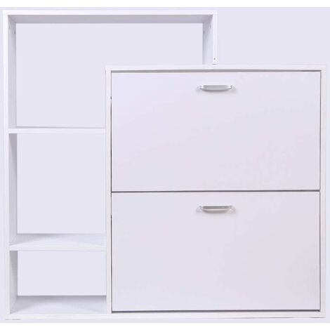 Scarpiera 2 Ante Basculanti Vano Aperto Bianco Legno Scarpe Stivali