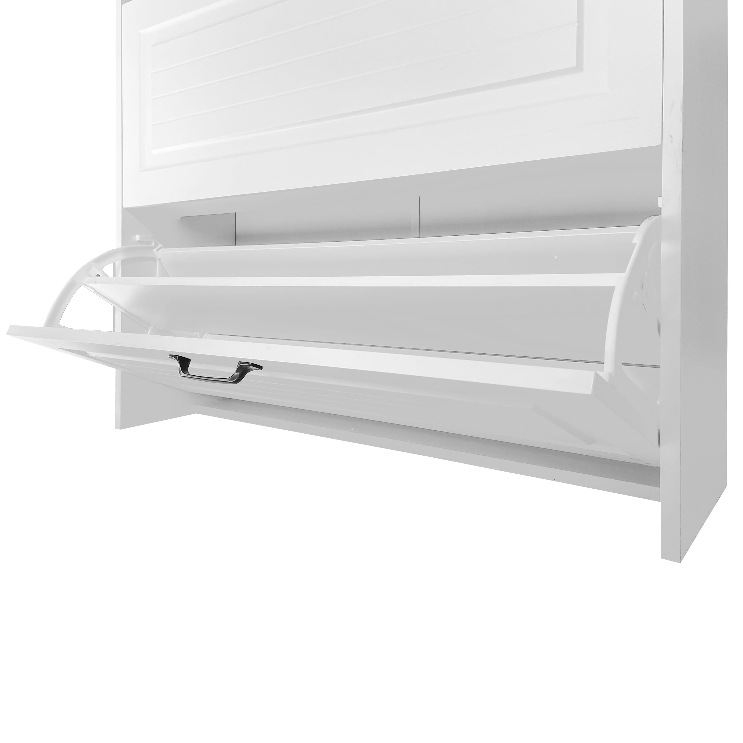 Scarpiera 87x132h Cm In Legno Bianco Con 3 Ante A Ribalta A Specchio E