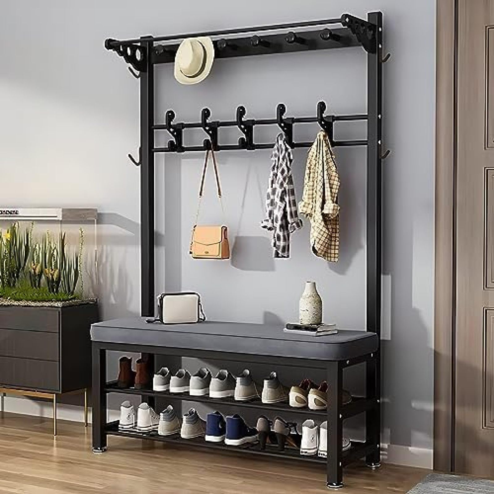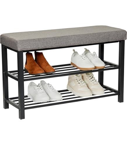Relaxdays Panca Scarpiera Da Ingresso, 2 Ripiani Portascarpe Panchina Cuscino Imbottito 50 5x82x33 Cm Nero Grigio 93228366