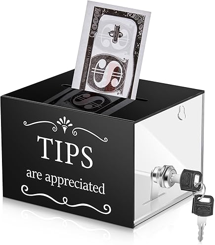 Con serratura: il design bloccabile del barattolo con punta in acrilico aiuta a proteggere dai furti e fornisce una conservazione sicura per le punte. Oltre alla funzione primaria dei barattoli di punta, la scatola dei suggerimenti con slot e serratura può raddoppiare come urna elettorale, scatola di donazione o scatola di suggerimenti, con la parte anteriore progettata per le punte e il retro trasparente che può ospitare altri usi, rendendo la scatola delle punte sia funzionale che decorativa. Quando i clienti vedono un blocco, è probabile che sentano che i loro contributi sono meglio salvaguardati, il che a sua volta migliora la loro fiducia. Design facile da usare: dotato di un'apertura superiore posizionata strategicamente, questo barattolo in acrilico combina funzionalità e facilità d'uso Dimensioni e design: i barattoli con punta presentano una pratica dimensione di 15,2 x 10,2 x 12,7 cm, fornendo un'ampia capacità per le punte. Barattolo con punta acrilica per barista Tip Box Tip Jars Scatola di suggerimenti con slot e serratura Scatola di donazione con serratura 15,2 x 10,2 x 12,7 cm Scatola per lotteria per bar ristorante musicista autista VEVOR VEVOR Scatola Dei Suggerimenti Da 41 X 25,5 X 10 Cm Casella Per La scatola dei suggerimenti può anche servire come salvadanaio per risparmiare casa. Nel frattempo, gli altri tre lati sono chiari, consentendo una visione chiara del contenuto all'interno. Materiale acrilico: la scatola per donazioni è realizzata in acrilico di qualità da 3 mm, che fornisce resistenza e durata per l'uso quotidiano. Molteplici funzioni: la scatola dei suggerimenti è versatile e può essere utilizzata in vari ambienti, tra cui bar, caffè, ristorante, hotel, spettacoli musicali e per conducenti di auto. Facile da usare: la scatola per donazioni con serratura è progettata con una piastra inferiore che può essere comodamente accessibile con una chiave, consentendo una facile rimozione delle punte raccolte all'interno.