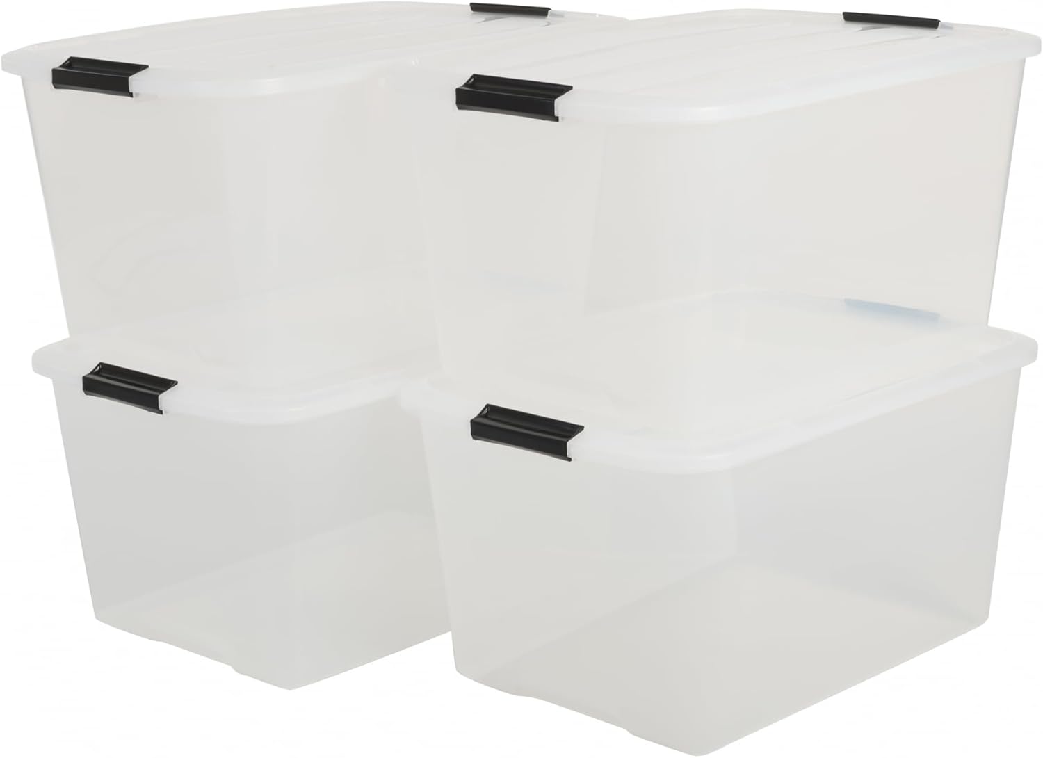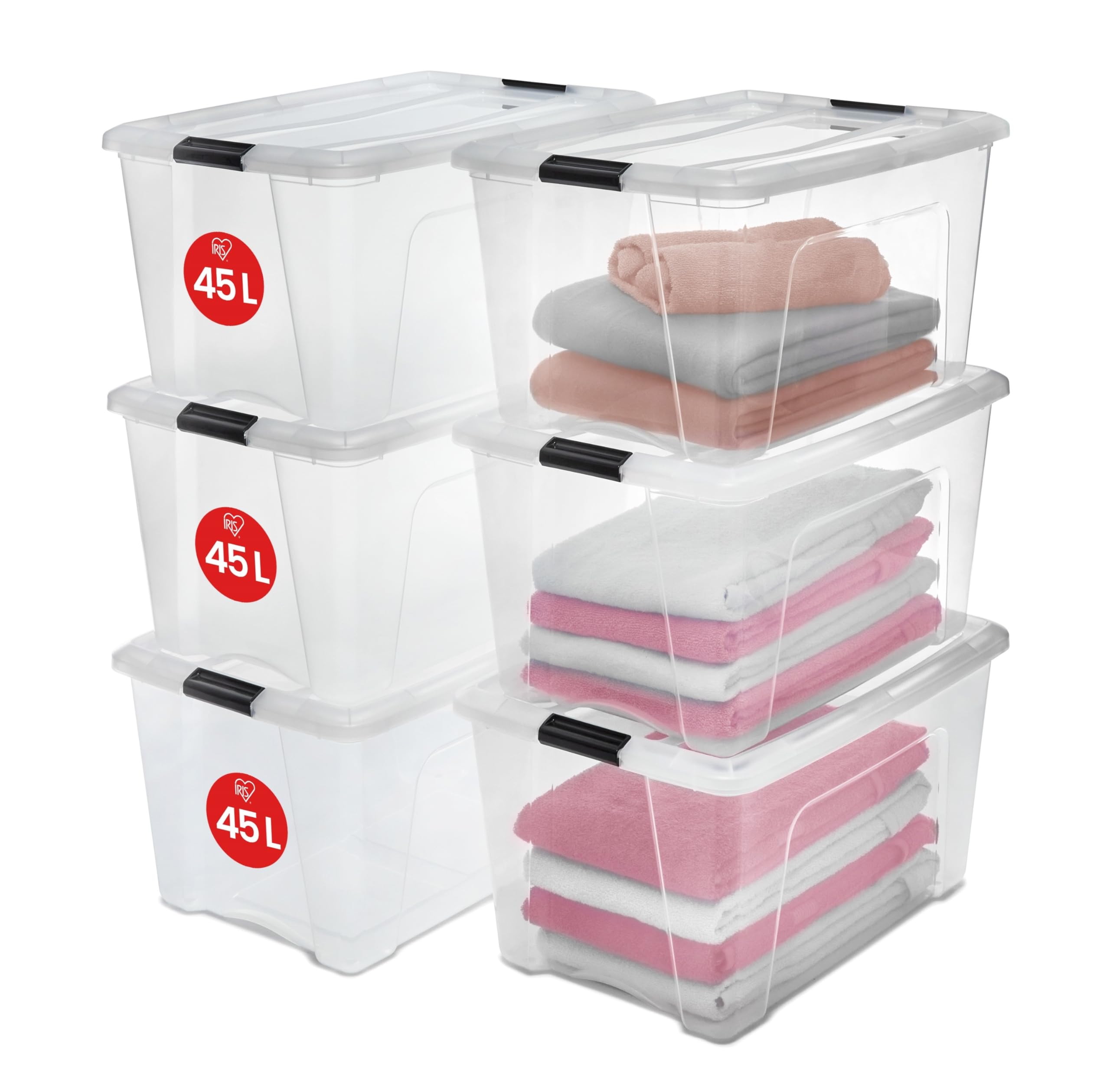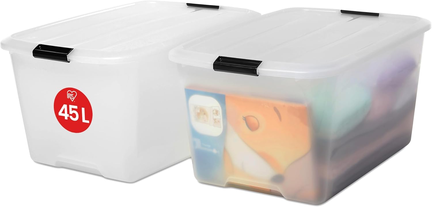 Iris Ohyama Scatole Portaoggetti in Plastica con Coperchio, 45L, Lotto di 2, Trasparente, Con Chiusura a Clip, Empilabile, Solido, Per Armadio, Garage, Casa, Ufficio, Organizzatore, TB-45 Contenuto della consegna: lotto di 6 scatole portaoggetti con coperchio a ribalta e clip sui lati, questo prodotto viene consegnato in una confezione standard conforme Design della scatola di stoccaggio: la forma di questo prodotto è stata pensata per adattarsi a diversi stili e gusti che possono essere utilizzati in vari luoghi, inoltre, il suo coperchio solido e rinforzato consente di impilare diverse scatole della stessa dimensione, risparmiando spazio Iris Ohyama Portaoggetti Iris Ohyama Scatole Portaoggetti In Plastica Con Coperchio, 15L, Lotto Iris Ohyama Catalogo Sicurezza e ruote: questo prodotto è stato dotato di clip per fissare la chiusura della scatola dopo o prima dell'uso quotidiano per qualsiasi famiglia, allo stesso modo, le ruote consentono di spostarlo facilmente nelle varie stanze o durante i traslochi Capacità della scatola di stoccaggio: il volume di una scatola è di 45l, inoltre, la capacità di questo prodotto è sufficiente per riporre molti oggetti, come oggetti ingombranti, accessori, giocattoli, libri e altro