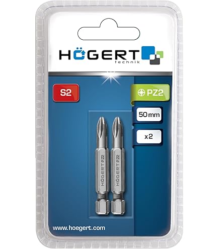 HÖGERT TECHNIK – PH2 Schrauberbits 50 Mm Aus S2-Stahl, 2 Stück, Extrem Robust, HRC 58–60, 1/4 Sechskantschaft, DIN 3126, Für Akku- Und Netzschrauber, Präzise & Langlebig