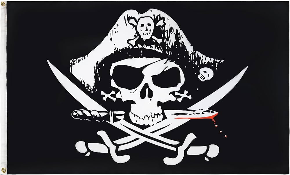 Piccola Set Banda + Sciabola Classica Dei Pirati - 47 Cm Per 3,25 Bandiera Pirati Tessuto : Poliestere 100D Imballaggio : Envoltorio de plástico Bandiera Pirata con bandana rosso 90 x 60 cm occhielli ... 6,52 € 7,95 € TTI 7,95 € 6,52 € IVA escl Uso : Interno ed esterno moderato Aggancio : Occhielli metallici