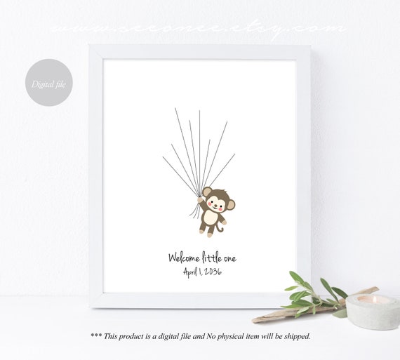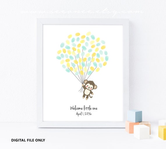 Libro Degli Ospiti Con Impronte Digitali Delle Scimmie, File Digitale Alternativo Del Libro Degli Ospiti Con Impronte Digitali Per Baby Shower, Regalo Di Compleanno A Tema Giungla, Arte Dell'asilo Stampabile
