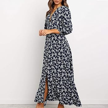 Elegante Abito Estivo Da Donna, In Chiffon, Con Scollo A V, A Vita Alta, Con Volant, Per Feste E Autunno, Marina Militare, S : Amazon.it: Moda