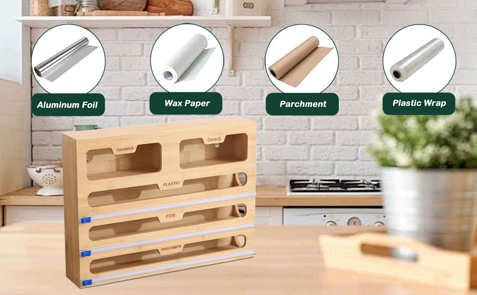 Alluminio Rotolo Alimenti Relaxdays Taglia Pellicola Da Cucina, 3 Scomparti Porta Carta Forno E Stagnola Hxlxp 21 5x33 5x8 Cm Bambu Naturale 95853387 Taglierina Per Carta 3 rotoli: portarotolo per pellicola trasparente, carta forno e alluminio - HLP: 21,5 x 33,5 x 8 cm Materiale: tagliapellicola in bambù naturale robusto - pratico e decorativo nella tua cucina Appendi questo organizer al muro oppure mettilo nel cassetto in cucina .Mensola con taglia pellicola da cucina in dettaglio- Dimensioni totali H x L x P: 23,5 x 39 x 9 cm ca. - Lunghezza massima per i rotoli : 31,5 cm ca. - Capacità di carico max.: 5 kg c Semplice: tagliafogli di alluminio con taglierina scorrevole per tagli dritti e a prova di infortuni