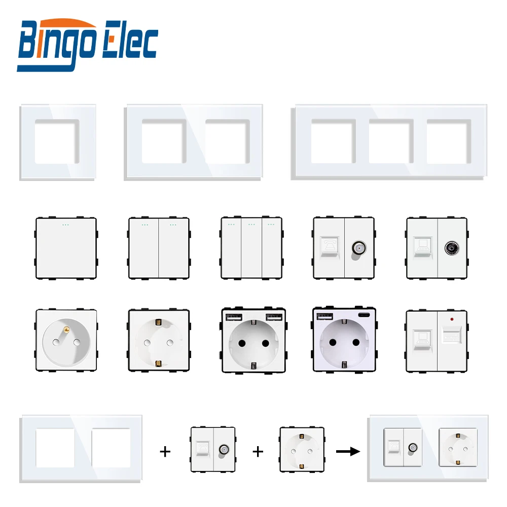 CNBINGO Interruttore Della Luce 1 Scomparto A 1 Via, In Vetro Da Incasso, Interruttore A Bilanciere Senza Viti, Interruttore A Bilanciere In Cristallo, Grigio