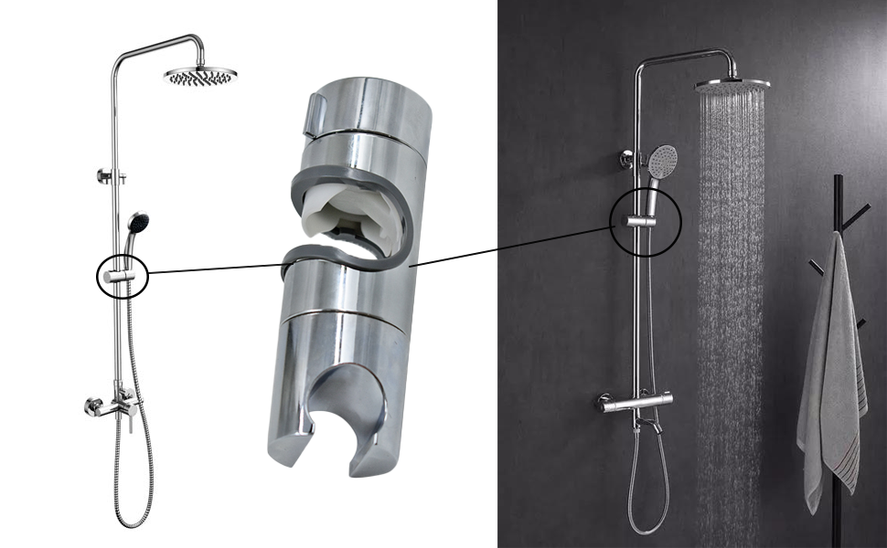 Supporto Per Asta Scorrevole Per Doccia Set Di Supporto Per Allo stesso tempo, è possibile regolare il diametro del riser per rendere più confortevole la doccia. IN STOCK: Supporto per soffione doccia regolabile per barra scorrevole, supporto per staffa per testata doccia per barra scorrevole Morsetto di ricambio per bagno Rotazione a 360 gradi, MSGM IT 240325 209316 al miglior prezzo. Consegna rapida in tutta Ita Il supporto per ugello doccia è realizzato in materiale ABS tecnico, cromato, con una buona struttura e . Questo supporto per doccia è un nuovo pezzo di di alta qualità per asta doccia circolare con un diametro standard di 18-25 mm. Attenzione: Non adatto a tutti gli ugelli e i cursori doccia. Facile da installare Senza la necessità di attrezzi, questo supporto per soffione doccia può essere facilmente regolando gli accessori avvitandoli nella barra scorrevole e serrandolo, il che signi che non è necessario rimuovere la barra scorrevole dalla parete, risparmiando tempo e lavoro. Il cuscinetto in na naturale negli accessori aumenta l'attrito e impedisce che il supporto dell'ugello della doccia scivoli verso l'alto e verso il basso.