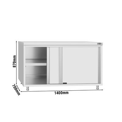 Tavolo Armadiato In Acciaio Inox Con Porte Scorrevoli - Aisi 304 Larghezza 120 Cm Profondita 70 Cm