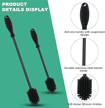 ️ 【Facile da riporre】: la spazzola da damigiana ha un manico antiscivolo e un foro all'estremità per poterla appendere in cucina o in bagno. Il materiale siliconico della spazzola per bottiglie in silicone ® garantisce una pulizia delicata ma efficace, senza lasciare graffi o danni La testina è facile da drenare e non forma muffa. Spazzola a setole morbide per una facile pulizia e nessun danno alla bottiglia, pulisci tutti i tipi di bottiglie o tazze con so-lo questa spazzola. È molto pulito dopo lavaggio con acqua, non lascia sporco. ️ 【Ampio utilizzo】: la spazzola per la pulizia della damigiana viene utilizzata per una varietà di contenitori di liquidi e piatti per la pulizia, bottiglie di bicchieri, thermos, lavelli, filtri, piastrelle, fessure delle finestre, linee di piastrelle e altri spazi ristretti. La spazzola per la pulizia delle bottiglie è facile da riporre e asciugare. ️ 【Materiale durevole】: la spazzola per la pulizia delle bottiglie è realizzata in nylon, acciaio inossidabile e materiale PP, che è resistente, durevole e può essere utilizzato a lungo. Le setole laterali morbide puliscono le pareti senza graffiare. A causa della misurazione manuale, esiste una tolleranza nella dimensione del prodotto. Spazzola Pulizia Bottiglie Scovolino Per Bottiglie, 2 Pcs Lavabottiglie, Scovolino Bottiglie Di Spazzola Per Pulisci Bottiglie ️ 【Facile da pulire】: la testina del pulitore per bottiglie d'acqua fornisce una pulizia delicata e u-no strofinamento serio e le setole robuste puliscono a fondo il fondo della bottiglia. Questa spazzola può pulire a fondo una varietà di contenitori ed è un must a casa.