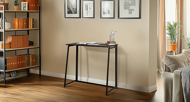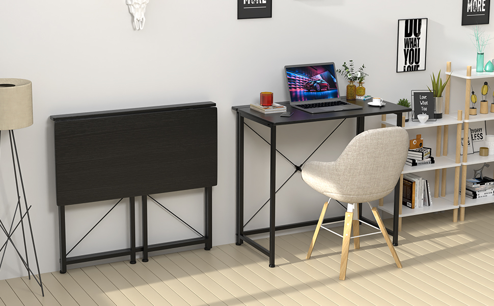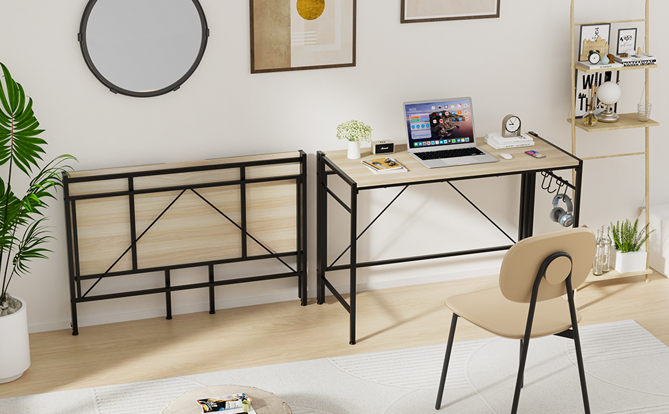 MEUBLE COSY Scrivania Pieghevole Postazione Di Lavoro Per Ufficio, Studio, Camera Da Letto, Struttura In Metallo, Stile Scandinavo, Quercia, 80x44x74cm