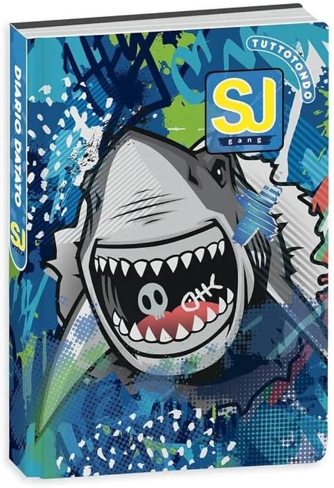 Agenda Compatibile Con DIARIO Scuola 20x15cm SJ Nuova Shark Squalo Boy Ragazzo 2024-2025+ Omaggio Portachiave Fischietto E Penna Multicolore