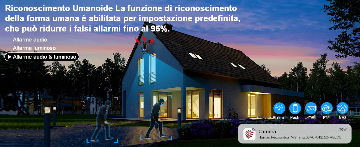 Durevole e robusto, con una durata più lunga 【Visione notturna 150M & Luci di allarme rosse e blu】La telecamera di sicurezza da esterno da 5MP è dotata di 2 LED laser IR, 4 LED IR e 4 LED bianchi, che offrono una visione notturna chiara fino a 492 piedi o una visione notturna a colori di 164 piedi. La telecamera supporta 355° /90° senza punti ciechi o angoli mancanti. La telecamera wifi esterno zoom esterno è dotata della fotocamera Sony, rendendo l'immagine da 5MP più chiara e luminosa. Allo stesso tempo, supporta anche il rilascio della sorveglianza al fine di soddisfare le esigenze dei condomini. Tutti i dati dei prodotti con il marchio Ctronics sono crittografati e memorizzati con una password, quindi non devi preoccuparti della perdita di dati. L'app consente di monitorare e controllare da remoto la fotocamera. La telecamera IP per esterni funziona anche in condizioni climatiche estreme (IP66). 1* 5MP 30X telecamera di sicurezza esterna 1* Cavo di rete e alimentazione 1* Viti a sacco 1* Manuale dell'acquirente 1* Istruzioni per l'uso 【Zoom ottico 30X & Risoluzione HD da 5MP】 La telecamera wi-fi esterno fornisce immagini ad alta definizione da 5MP (2560 x 1920P). Supporto per la visualizzazione simultanea di immagini da 4 telecamere su dispositivi mobili per un monitoraggio ancora più sicuro. Questa telecamera wi-fi esterno da 5MP supporta telefoni cellulari (iOS, Android), iPad, PC (Windows, MacOS), HiP2P, FTP, NAS, NVR. Supporta i punti preimpostati e il controllo automatico della velocità Questa videocamera di sorveglianza fuori wlan può registrare continuamente per 24 ore ed è anche possibile regolare il tempo di allarme. Zoom ottico 30X e 5MP HD] La telecamera wifi esterno fornisce immagini ad alta definizione a 5 megapixel (2560 x 1920). Supporta anche lo zoom ottico 30X e la messa a fuoco automatica, in modo da poter zoomare liberamente le immagini senza preoccuparsi d 【Cruise automatica & Zoom automatico】Questa telecamera da esterno da 5MP supporta la rotazione e il tracciamento automatico allo stesso tempo. Allo stesso tempo, l'immagine è stata ingrandita rapidamente con uno zoom ottico 30X e ancora chiara senza perdere dettagli. Tapo Telecamera Ctronics 5MP 30X Optical Zoom Metal Security Camera WiFi 2.4/ 5Ghz Outdoor With Auto Cruise & Zoom, Surveillance Cameras 492ft Night Vision,Human/Motion Detection,IP66 Telecamera Wifi Esterno Guardare i replay può essere fatto direttamente da un'app mobile, che è molto conveniente e sicuro. Registrazione 24/7,Tempo di Allarme Personalizzato Quando questa telecamera di sorveglianza PTZ da 5mp rileva un movimento umanoide, traccia automaticamente il movimento e invia un avviso tramite l'app. Necessità di passare manualmente la chiarezza a HD (5mp). Le funzioni automatiche di tracciamento e controllo della velocità sono. 2 tipi di crociera: la crociera zoom ha 2 percorsi che seguono ciascuno 16 punti preimpostati (massimo) e la crociera normale ha 1 percorso che segue 30 punti preimpostati (massimo).