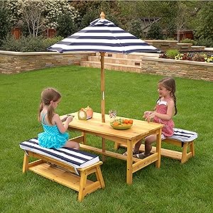 RELAX4LIFE Set Tavolo E Sedie Per Bambini, Set Mobile Da Esterno Con Ombrello Parasole Da Esterno, Tavolino E Panche Da Giardino Terrazzo Balcone, Mobile Da Picnic E BBQ (Modello 4) : Amazon.it
