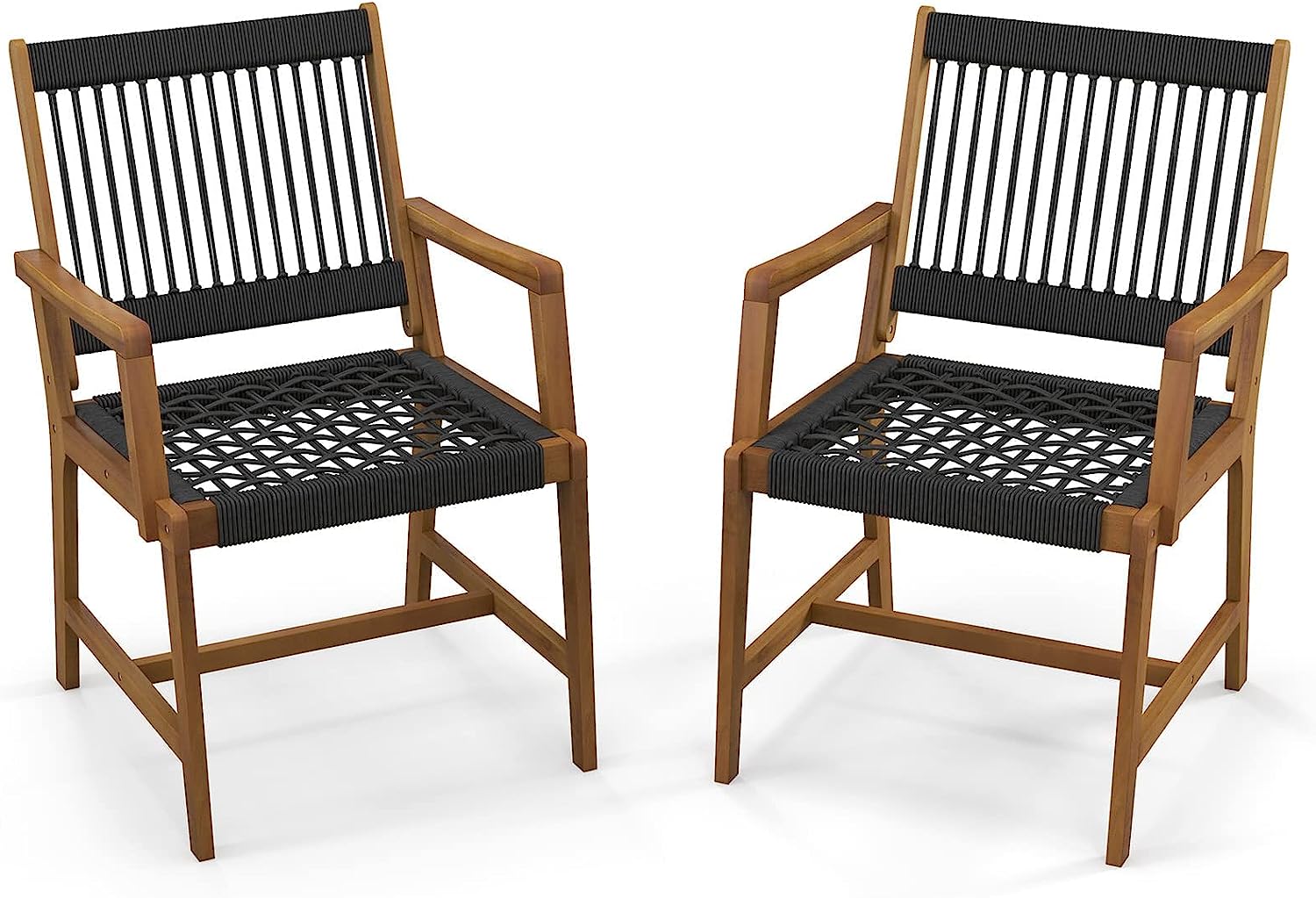 Marchio. COSTWAY ; Colore. Nero+naturale ; Materiale. legno di Acacia, corda di plastica ; Dimensioni del prodotto. 64P x 57l x 90H cm ; Taglia. 64 x 57 x 90 cm Inoltre, possono essere utilizzate anche in ambienti interni. La superficie liscia e priva di sbavature crea un piacevole effetto morbido al tatto e una sensazione di comfort garantita. 【Miglior Traspirabilità】Le nostre sedia da giardino sono realizzate con corde di plastica intrecciate a mano che garantiscono una notevole traspirabilità, rendendole adatte a qualsiasi clima e impedendo sensazioni di chiusura. 【Più Luoghi Applicabili】Grazie alla sofisticata combinazione di corde nere e legni naturali, coniugano estetica e funzionalità ed elevano l'atmosfera in verande, patio e cortili. Sedie Di Plastica Da Esterno COSTWAY Set Di 2 Sedie Da Giardino In Legno, Sedie Da Esterno Con Sedile A Doghe Schienale Inclinato Poltrone Da Giardino Ergonomiche Portate 100 Kg Per Cortile Balcone Giardino Terrazzo 82825009 Set Pranzo Giardino 【Poltrone Ergonomiche】I sedili profondi di 48 cm offrono un'area di seduta più grande, mentre lo schienale inclinato e i braccioli accoglienti elevano ulteriormente l'esperienza di seduta.