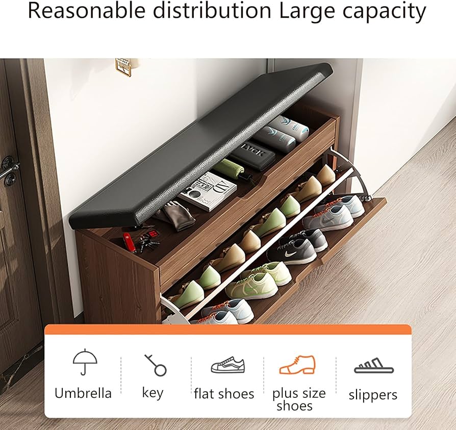 Scarpiera Con Sedile Contenitore, 60 X 30 X 43 Cm, Panca Portascarpe, Bianco Caldo, Per 6