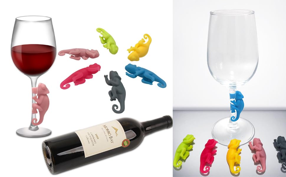 Segna Bicchieri Silicone Animali, Segna Bicchiere Calice, 18 Pezzi (Camaleonte, Gatto, Cavallo