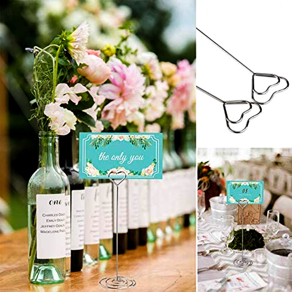 XNIVUIS 20 Pezzi Segnaposto Matrimonio Memo Clip Clip Portafoto Titolari Carta Numero Metallo Portafoto Supporto Segnaposto Cuore Portacarte A Forma Di Cuore Per Riunioni Di Feste (Argento