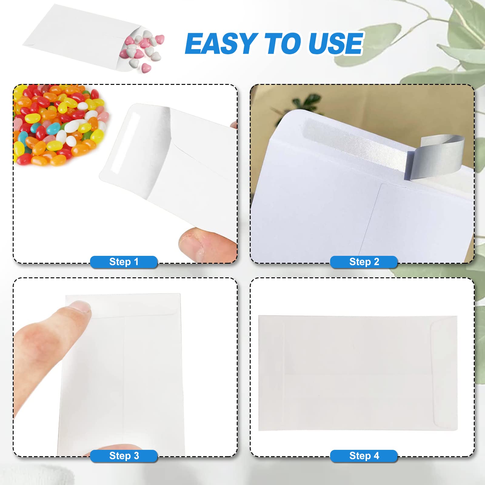 100 Buste Piccole Sacchetto Di Carta Con Nastro Biadesivo, LAMXD Buste Di Semi Per Monete, Perline, Francobolli 10 X 6 Cm (3,9 X 2,4 Pollici) Marroni