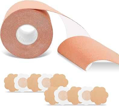 LIVESTN Nastro Per Seno, 1 Rotolo Nastro Adesivo Reggiseno Con 5 Paia Copri Capezzoli, Nastro