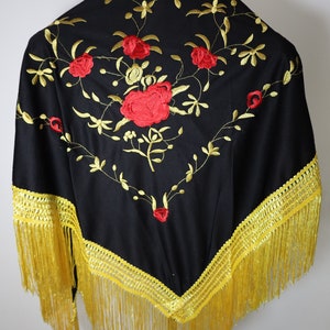 La Senorita Spanish Flamenco Dance Shawl Black With White