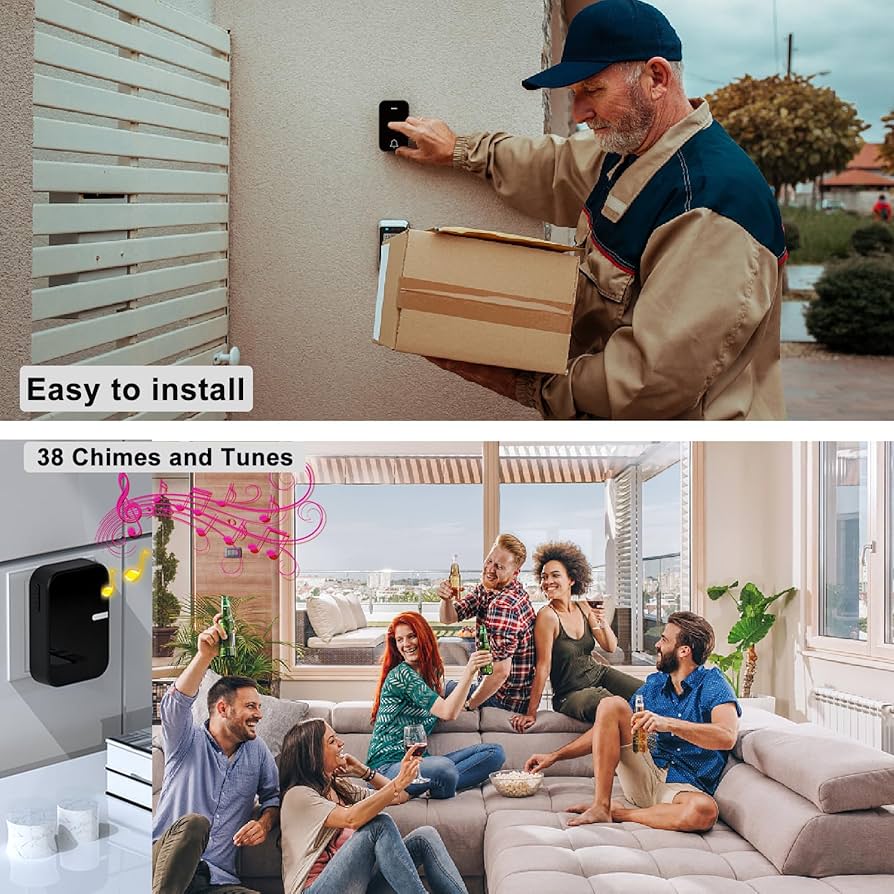 Quando si preme il pulsante, l'energia cinetica viene convertita in un segnale elettrico che suona alla porta wireless. Tutti i trasmettitori e ricevitori di URESMAT possono essere nuovamente associati e controllati insieme. Niente più batterie preoccupanti. Nessuna Batteria Richiesta: il nostro trasmettitore campanello senza fili da esterno wireless utilizza la tecnologia PUSH-RF unica. Quando si preme il pulsante, l'energia cinetica viene convertita in un segnale elettrico che suona alla porta wireless. N ♬ 38 Bellissimi Carillon e Melodie: Questo campanello senza fili offre 38 carillon melodia classici con un controllo del volume regolabile e una selezione diversificata per soddisfare le tue esigenze. ♬ Nessuna Batteria Richiesta: Il nostro trasmettitore campanello wireless utilizza l'esclusiva tecnologia PUSH-RF. Campanello Senza Fili Senza Batteria Non Richiede Batteria] , YINXN Campanello Senza Fili Da Esterno Basta strappare il film sul trasmettitore e incollarlo vicino alla porta. 4 livelli di volume regolabili da 0 dB a 100 dB, che è abbastanza forte da far sentire gli anziani; Goditi piacevoli melodie ogni volta che qualcuno suona alla tua porta. Più pratico, più efficiente dal punto di vista energetico e più pratico di quello precedente. Ottimo per casa, ufficio, hotel, villa, ospedale, ufficio, appartamento, scuola e altri campi appropriati. ♬ Lunga Portata Wireless: Il nostro campanello Wireess con portata wireless 150M / 500FT, inclusi 2 ricevitori plug-in, non interferirà con altre apparecchiature di casa tua o con quelle dei tuoi vicini; ti assicura di non perdere mai un visitatore, anche se sei a poche stanze di distanza o su un altro piano.