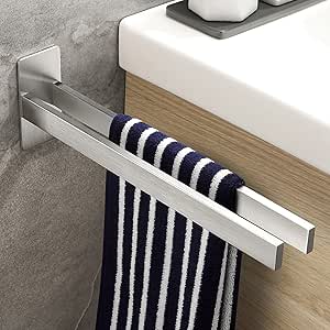 Supporto per asciugamani da bagno senza foratura : autoadesivo, senza foratura, il retro dispone di un adesivo forte, molto stabile. Con il forte cuscinetto adesivo, l'asta può essere fissata alla parete liscia Con la sua possibilità di montaggio flessibile, può essere montato sia a sinistra che a destra e facilita l'appendere asciugamani e altri tessuti. Realizzato in acciaio inossidabile SUS304, questo supporto offre resistenza all'acqua e alla ruggine ed è facile da pulire. Porta Carta Igienica Adesivo ML-Design Set 2x Portasciugamani Senza Foratura Da Bagno Con Adesivo In Acciaio Argento 39 Cm Appendi Accappatoio Bagno Grazie al design autoadesivo, il montaggio è possibile senza forare: basta staccare la pellicola e fissarla su superfici lisce come piastrelle, vetro o metallo. Il suo design moderno e minimalista è adatto a diversi ambienti, come balconi o bagni per gli ospiti.