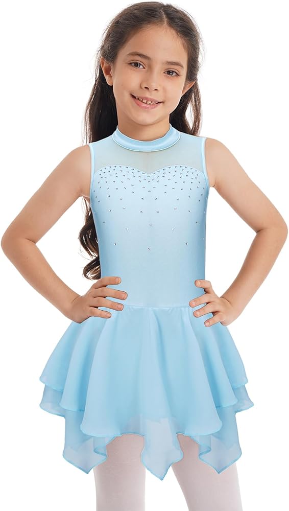 Body Danza Bambina Runhomal Bambino Ragazza Vestito Pattinaggio Artistico Strass Brillante Abito Danza Classico Senza Maniche Leotard Body Ginnastica Competizione Balletto 5-16 Anni, A Borgogna, 13-14 Anni Abiti Da Pattinaggio Artistico