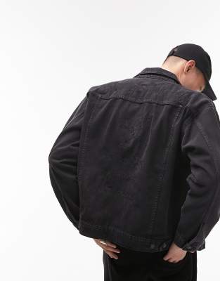 Topman - Giacca Di Jeans Oversize Senza Maniche Nera Con Scritta “Free