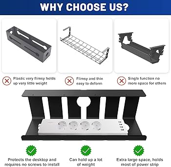 Con il nostro robusto sistema di gestione dei cavi, cavi, accessori di ricarica e connettori multipli possono essere posizionati in modo ordinato per garantire uno spazio di lavoro ordinato. Assistenza clienti: In caso di problemi durante l'uso, vi preghiamo di contattarci in tempo e vi offriremo la soluzione perfetta al problema Contenuto della confezione: 2 cavi di gestione. Questo organizer per cavi da scrivania ha un buon rivestimento che garantisce una stabilità e una capacità di carico buona e duratura. ✅Accessori per ufficio: con il suo look elegante e senza tempo, questo supporto per cavi sotto la scrivania è un accessorio attraente se non riesci a nascondere il retro della scrivania. La struttura a rete consente di inserire o rimuovere i cavi quando necessario e fornisce una buona ventilazione per evitare il surriscaldamento dell'alimentatore. Flessibile: installazione interna o esterna. Contenuto della confezione: il set di gestione dei cavi contiene 2 organizzatori per cavi con dimensioni 40 x 17 x 10,5 cm, 4 fissatori per cavi, 12 chiusure in velcro, 2 chiavi inglesi e 2 chiavi inglesi, che ci permettono di mantenere la nostra scrivania più ordinata. Installazione semplice: la gestione dei cavi è facile da installare sulla scrivania senza praticare fori, può essere montata su scrivanie con uno spessore di 1-5,3 cm, il nostro gestore per cavi da tavolo si fissa direttamente al telaio della scrivania, basta ruotare i pulsanti neri con la mano per fissare il supporto per cavi in modo sicuro alla scrivania, si adatta a quasi tutte le scrivanie. Il montaggio esterno consente una facile organizzazione di prese e cavi. L'organizer per cavi da ufficio può essere montato all'interno o all'esterno a seconda delle necessità. Rack Sotto Cavi Scrivania Mecmbj Porta Cavi Scrivania, Sotto La Scrivania, Senza Trapano, Vassoio Per La Gestione Dei Cavi In Rete Cava Per Nascondi Cavi E Ordinati, Per Ufficio E Casa Cable Management Il supporto allungato aiuta anche a bilanciare il peso in modo che il gestore dei cavi non scivoli dal tavolo. Grande capacità: la canalina sotto il lavello offre spazio sufficiente ed è compatibile con la maggior parte degli alimentatori e dei cavi, tra cui alimentatori, alimentatori a due fili, cavi audio, cavi HDMI e altro ancora. Design a griglia aperta: il supporto per cavi è realizzato in metallo di alta qualità e rivestimento resistente all'usura, robusto e durevole, non facile da deformare, con un'eccellente capacità di carico fino a 5 kg; superficie liscia, non si graffia facilmente con le dita.