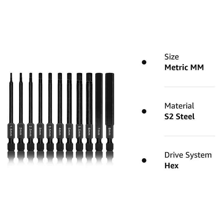 Ambito di applicazione: Adatto per cacciaviti elettrici, cacciaviti manuali, trapani elettrici e trapani pneumatici. Alta qualità e potente, un set è sufficiente per l'uso. Informazioni sul prodotto: Tipo: set di chiavi a brugola Materiale: acciaio legato S2 di alta qualità Trattamento superficiale: sabbiatura Tipo di testa: testa esagonale Lunghezza: 50mm Dimensioni: H1.5/H2/H2.5/H3/H4/H5/H6 Uno strumento essenziale in ogni casa, officina e cassetta degli attrezzi. Compra 7pcs 50mm Hex Allen Power Bit Set, Punte per Trapano con Chiave a Brugola Magnetica H1.5-H6, Phillips Testa Cacciavite Bit S2 Acciaio Alta Lega a prezzi vantaggiosi su . Spedizione Gratuita disponibile per membri Prime su oltre un milione di prodotti Il set include: Il set di strumenti contiene 7 pezzi di set di punte per cacciavite, H1.5/H2/H2.5/H3/H4/H5/H6, lunghi 50 mm, che possono soddisfare le diverse esigenze. Caratteristiche Alta precisione: la punta del trapano può resistere all'impatto immediato degli utensili pneumatici a coppia elevata, migliorando notevolmente la durata. Bit Cacciavite SeonFook 7pcs 50mm Hex Head Allen Wrench Drill Bits S2 Steel Hex Bits Set 1/4 Inch Shank Magnetic Screwdriver Bits Set Set Chiavi A Brugola Ogni bordo della punta torx può essere bloccato con precisione senza danneggiare la vite e la punta del cacciavite. Materiale di alta qualità : Queste punte esagonali sono realizzate in acciaio S2 di alta qualità , la durezza raggiunge 61RCH e la superficie del set di testa torx di sicurezza è nichelata, che ha buone funzioni antiruggine e anticorrosione. Può essere utilizzato con portapunte convenzionali. Rivestimento antiruggine: Questo utile set di cacciaviti torx è stato trattato termicamente integralmente, con elevata coppia e durezza, non facile da rompere e indossare, lavorazione squisita, ogni bordo può essere bloccato con precisione. Non arrugginisce e mantiene la sua lucentezza anche se esposto all'aria per lungo tempo, è più forte e più durevole di altri.