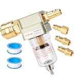 A causa della differenza di luce e dello schermo, il colore dell'articolo potrebbe essere leggermente diverso da quello dell'immagine. Dimensioni della confezione: 15 × 15 × 4,8 cm. Elettrico Separatore Acqua , Filtro Regolatore 1/4 Aria Compressa Il separatore d'acqua ad aria compressa estende i vantaggi dei filtri con funzione di drenaggio a pressione differenziale, che inizia a svuotare quando la macchina smette di funzionare. ● Peso della confezione: 282 g. La confezione include un filtro per asciugare e pulire l'aria, connettori rapidi tedeschi (4 pezzi) e 2 nastri PTFE per sigillare i connettori. Filtro regolatore Compressore d'aria: L'aria compressa che fuoriesce può rimuovere sporco e condensa. La funzione del regolatore del filtro dell'aria è regolare la pressione e filtrare l'olio e l'umidità nel tubo Caratteristiche del prodotto: ● Materiale: rame, lega di alluminio, plastica ● Peso del prodotto: 215 g. ● Dimensioni del prodotto: 10 × 4 × 4 cm. Il separatore d'acqua ad aria compressa è realizzato in rame, che è durevole, non arrugginisce facilmente e ha una maggiore durata.