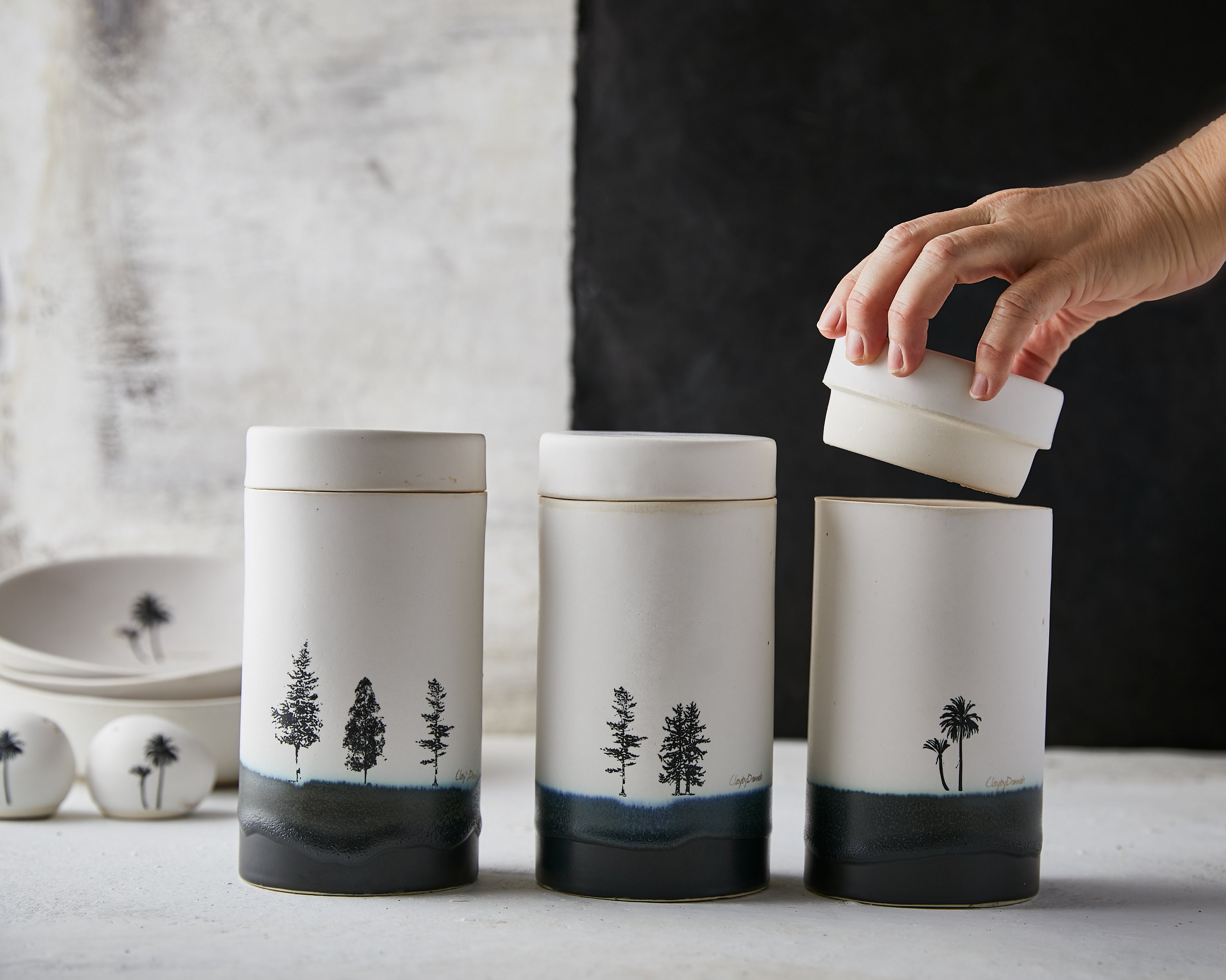 Set 3 Barattoli Da Cucina In Ceramica Sale Caffè Zucchero Decoro Agadir