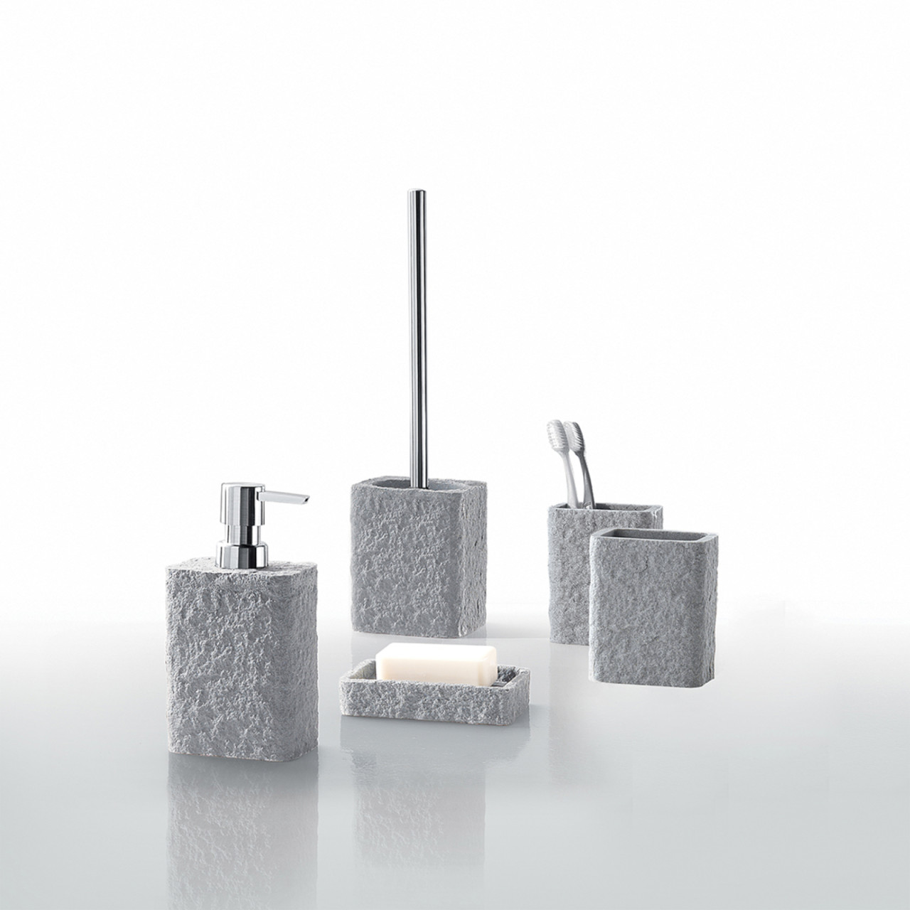 Questi accessori sono ideali per mantenere il tuo bagno organizzato e igienico, garantendo che tutto sia sempre a portata di mano e in ordine Che tu stia rinnovando il tuo spazio o semplicemente cercando di aggiungere un tocco di classe, questi accessori si adattano facilmente a qualsiasi decorazione, offrendo funzionalità e bellezza ACCESSORI BAGNO IN CERAMICA GRIGIA CON LAVORAZIONE IN RILIEVO · Dosasapone: L cm 8; P cm 8,70; H cm 18 · Bicchiere portaspazzolini: L cm 8; P cm 8; H cm 11,60 🧼 Praticità Quotidiana: Goditi la comodità del dispenser dosasapone con erogatore in plastica cromata e del bicchiere portaspazzolini. Il dispenser dosasapone e il portaspazzolini si integrano perfettamente in qualsiasi arredamento, aggiungendo un tocco di raffinatezza e praticità al tuo spazio quotidiano Questo kit offre tutto il necessario per mantenere il tuo spazio pulito e ordinato, con un design che cattura l'occhio e migliora l'esperienza quotidiana 🏠 Soluzione Completa: Con il set dosasapone e portaspazzolini di Kiamami Valentina, arredare il tuo bagno non è mai stato così semplice. Questo set di accessori in ceramica grigia unisce eleganza e funzionalità, impreziosito da una raffinata lavorazione in rilievo che dona un tocco di classe a qualsiasi ambiente. Ideali per chi desidera un bagno curato nei minimi dettagli. Il set include:Dispenser per sapone liquido con erogatore in plastica cromata, pratico e resistenteBicchiere portaspazzolini, perfetto per mantenere in ordine spazzolini e dentifricioLa finitura sofisticata e il design versatile rendono questi accessori facilmente abbinabili a qualsiasi stile di arredamento, aggiungendo un dettaglio decorativo senza rinunciare alla comodità quotidiana. Kit Accessori Bagno Online Set Accessori Bagno Dispenser E Portaspazzolini Turchese Cobalto Resina Effetto Pietra Matera Accessori Da Bagno Vendita