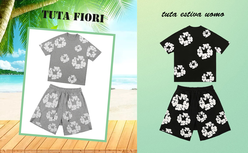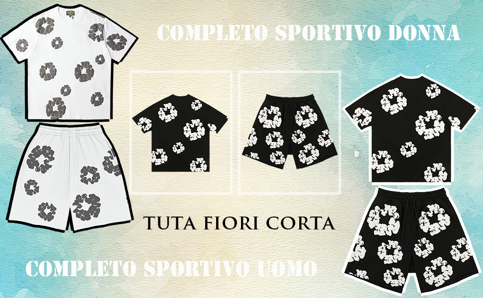 Assortito: set estivo da uomo con stampe floreali, colori vivaci e un sapore esotico. Abbinato agli stessi pantaloncini con coulisse, due comode tasche, alla moda e pratiche, facile da creare un'immagine di hipster estivo ⭐⭐⭐ Set sportivo da donna/uomo:Set sportivo da donna/uomo, pantaloncini sportivi estivi per donna/uomo, taglia grande, pantaloncini e top a due pezzi, set sportivo per donna/uomo, set da donna e uomo. Taglia più per soddisfare le esigenze dei diversi tipi di corpo, comodo da indossare senza stress. Composizione materiale : Cotone Abbinato agli stessi pantaloncini con coulisse, due comode tasche, alla moda e pratiche, facile da creare un'immagine di hipster estivo. Tuta Donna Set Corto Maglietta Stampata A Fiori Per Donna/uomo, Tuta Da Pantaloni Tuta Donna ⭐⭐⭐Occasione: tuta sportiva da uomo e donna, progettata per lo sport, che si tratti di fitness all'aperto, jogging, passeggiate casual o viaggi estivi, può essere facilmente utilizzata per mostrare l'energia che si ha in sé