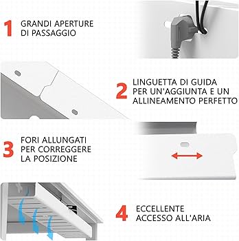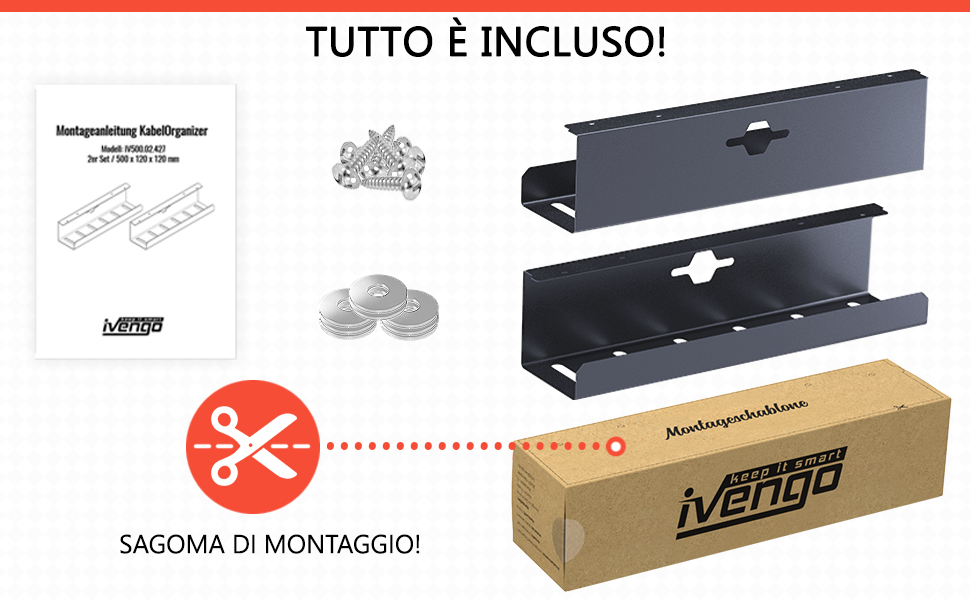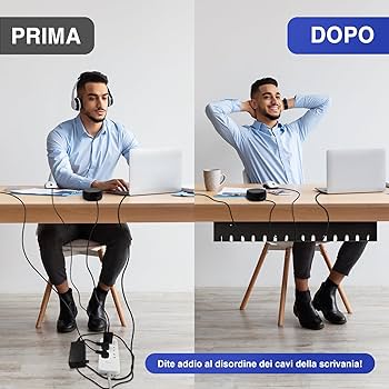 Grazie alla sua funzionalità, il sistema cavi scrivania consente di mantenere il tuo spazio di lavoro ordinato ed efficiente! Se non sei soddisfatto del portacavi scrivania, ti rimborsiamo senza fare domande! L'organizzatore cavi scrivania ha una finitura elegante e liscia e apre la strada a un ambiente di lavoro migliore. iVengo® XL raccogli cavi scrivania testato TÜV [2x50 cm] per una ideale cable management scrivania - spaziosa nascondi cavi scrivania [set di 2] - robusta e intelligente porta cavi scrivania - bianco Tutti i cavi scrivania sono facilmente adattabili! Ci possono facilmente rientrare le prese a uno o due righe! Nascondi Cavi Scrivania Raccogli Cavi Scrivania Di Stileo - Set Da 2 Portacavi Sotto Scrivania Super Robusti Per Cavi Scrivania Bianca 365 GIORNI DI RIMBORSO: Siamo al 100% convinti del nostro organizzatore cavi scrivania e assumiamo tutto il rischio! Il raccoglitore cavi scrivania è l'ideale per mantenere i tuoi cavi al sicuro e in ordine, e per salvaguardare il tuo spazio di lavoro dall'ingombro di cavi scomodi. SMART & COMODO: Ampie aperture ergonomiche per i connettori con scanalature per cavi garantiscono una gestione facile dei cavi per il sistema cavi scrivania nel portacavi sotto scrivania. Una guida per il montaggio in lingua tedesca viene fornita in allegato! MONTAGGIO SEMPLICE: La nostra precisa guida per il montaggio, l'uso di apposite guide di supporto e fori di fissaggio consentono un'installazione precisa, pulita e facile del raccogli fili scrivania!