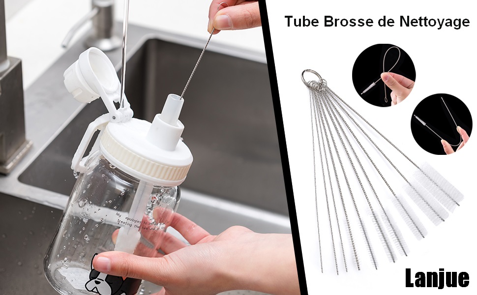 Cannucce Plastica LANGING - Set Di 10 Spazzole In Nylon Per La Pulizia Di Bottiglie A Collo Stretto, Con Spazzola Per La Pulizia Del Tubo Con Gancio Scovolini Dentali