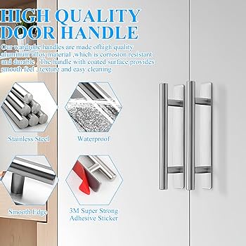 Applicazione: adatto sia per porte interne che esterne in legno, metallo, vetro. Materiale: le nostre maniglie per porte a tirante sono realizzate in acciaio inossidabile di alta qualità, che ha un'elevata resistenza alla corrosione e alla ruggine e non teme l'umidità. Maniglie moderne in acciaio inox a T per cassetti della cucina, confezione da 25, lunghezza 224 mm, maniglie per ante di armadietti da bagno Maniglia Porta Interna SSYR&P Set Di 2 Maniglie Adesive Per Mobili, Maniglie In Maniglie Per Mobili Da Cucina Ottimo per porte scorrevoli di fienili, porte di armadi, casette da giardino, cancelli di recinzione, cantine e molto altro ancora. Se vuoi smontarlo, puoi usare un asciugacapelli per impostarlo su aria calda e soffiarlo sul manico per qualche minuto, poi puoi toglierlo facilmente. Artigianato: la maniglia della porta scorrevole ha una superficie liscia e piatta, il design dell'angolo ad arco protegge attentamente bambini e animali domestici. Nota: non può essere utilizzato su pareti, vernice al lattice, carta da parati o legno non verniciato. Dotato di un forte autoadesivo, può aderire saldamente alla maggior parte delle porte. Nessuna perforazione necessaria.