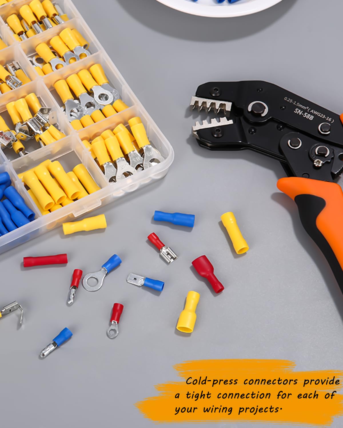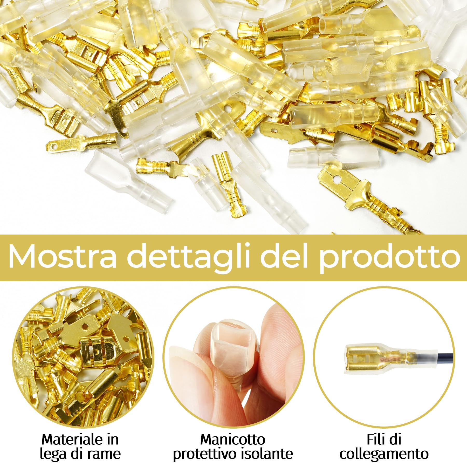 Connettori Elettrici Rapidi Set Di 280 Capicorda – Set Di 280 Pezzi – Spina Elettrica Piatta Ad Anello Forcella, Connettori Per Cavi Per Elettricisti Puntalini Elettrici A Crimpare Non è necessaria alcuna saldatura per stabilire una connessione sicura tra due fili per lavori di riparazione elettrici rapidi ed efficienti. 280 pezzi capicorda elettrici, connettori capicorda 0,5 – 6,0 mm² capicorda per ; Quantità. 2 disponibili ; Numero oggetto. 365316548317 ; Brand. Carehabi ; Marca Ideale per officine, elettricisti, meccanici, officine o auto, furgoni, motocicli, ecc. ✅ Ampia applicazione: questi connettori elettrici soddisfano tutti gli standard elettrici. Capicorda adatti per auto, moto, capicorda e uso quotidiano in casa. Risparmia tempo e migliora l'efficienza del lavoro. ✅ Fili applicabili: capicorda piatto assortimento, rosso: 0,5-1,5 mm², AWG 22-16; blu: 1,5-2,5 mm², AWG 16-14; giallo: 2,5-6,0 mm², AWG 12-10. ✅ Set capicorda 15 tipi di connettori a crimpare nelle dimensioni più utilizzate.