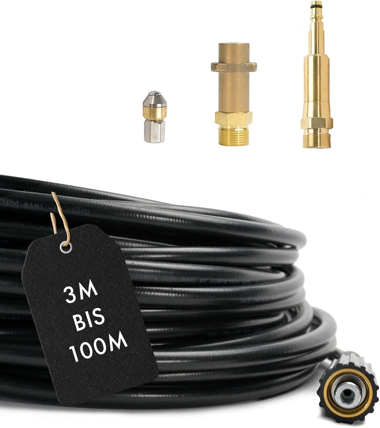 Adattatore a baionetta in ottone massiccio (non fisso) – Ingresso M22 IG, uscita 1/8 AG. Attacco pistola: baionetta Ugello per la pulizia: 1 pezzo, ingresso 1/8 IG, uscita 3 raggi all'indietro, rotante. Set di 3 tubi di pulizia per Kärcher Workzone Aldi Craft HD HDS e altri – Connettore 1/8 AG: M22 x 1,5 IG & adattatore a baionetta (plastica) e ugello rotante per la pulizia dei tubi (25 metri Secondo le direttive per idropulitrice/tubi per la pulizia, tutti i tubi della nostra casa sono dotati di un marchio di sicurezza di 0,5 m prima dell'ugello/connettore. L'ugello rotante per la pulizia dei tubi si inserisce automaticamente nel tubo attraverso gli ugelli rivolti all'indietro per pulirlo. Particolarmente flessibile ed estremamente maneggevole Appositamente progettato per la pulizia dei tubi. Set di 3 tubi di pulizia per Kärcher Workzone Aldi Craft HD HDS e altri – Connettore 1/8 AG: M22 x 1,5 IG & adattatore a baionetta & ugello rotante per la pulizia dei tubi (ingresso 1/8 IG, uscita 3 getti all'indietro) Tubo flessibile per la pulizia dei tubi, particolarmente flessibile (dimensione selezionabile), per Kärcher Workzone Aldi Craft HD HDS ecc. La relativa bocchetta di pulizia: 1 pezzo, ingresso 1/8 IG, uscita 3 getti all'indietro, rotante. fino a 200 bar, temperatura fino a 60° Adattatore a baionetta in ottone massiccio (non montato) - Ingresso M22 IG, uscita 1/8 AG. Attacco pistola: baionetta. Sonda Sturatubi Per Idropulitrice Set Di 3 Tubi Di Pulizia Per Kärcher Workzone Aldi Craft HD Idropulitrice Acqua Calda