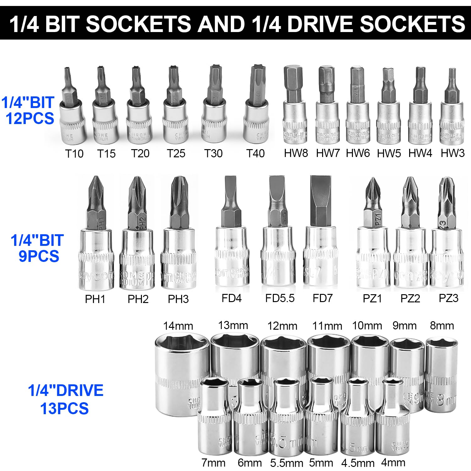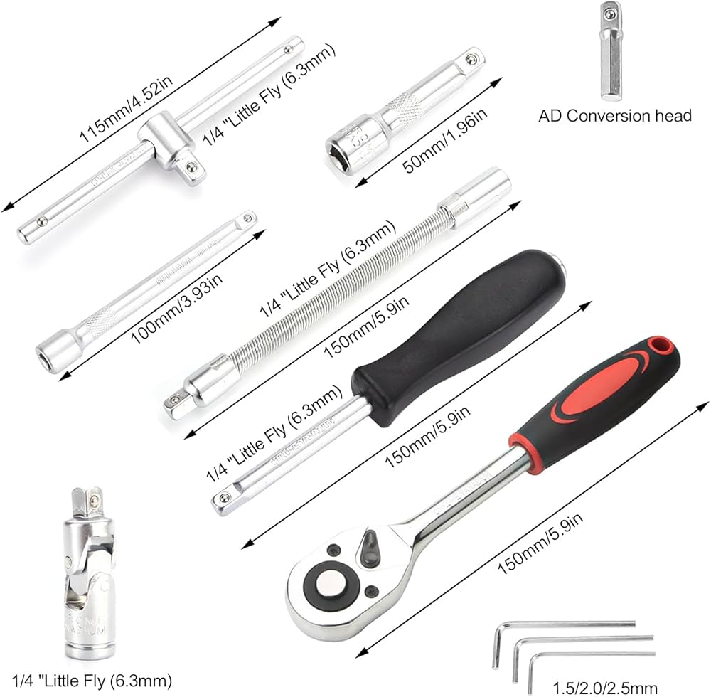 Set Di 46 Chiavi A Cricchetto E Chiavi A Bussola Da 1/4 Di