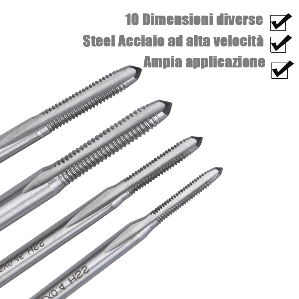 Maschio Filettatore Set Di Maschi Per Filettatura Metrica In Acciaio Ad Alta Velocità Sonda Lambda Specifica: Tipo di elemento: maschio a flauto diritto Materiale: acciaio ad alta velocità : metrico Quantità di fili: 4 Grado di tolleranza della filettatura: 0,014 Foro passante/foro cieco: Foro passante Stile tocco: slot dritto Codici thread: Thread Fin Applicazione: adatto per acciaio spesso, gomma, alluminio, rame e legno dei pacchetti: 2 x Maschi per flauto dritto1 x Scatola portaoggetti Trova Set di 5 maschi a spirale in acciaio ad alta velocità con flauto dritto - Misure metriche miste M4 M5 M6 M8 Set a mano per filettare viti da macchina a , parte del nostro Business, Industry & Science pronto per fare acquisti online oggi Una buona qualità non può fornire una più per la tua vita, ma anche buoni materiali possono aumentare la durata del prodotto. I maschi non rivestiti presentano il substrato di base senza alcun rivestimento aggiuntivo e si adattano a 'ampia gamma di applicazioni Design eccellente: il design della filettatura metrica standard, chiaro e ordinato, il set di maschi metrici fornisce una rapida rimozione dei trucioli per una filettatura efficiente, incisiva e durevole Ampiamente usato: i maschi a spina metrica possono creare nuovi fili o rifilare fili danneggiati o inceppati. acqua) può prolungare la vita utile durante la maschiatura