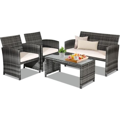 COSTWAY 4 Pezzi Set Di Mobili Da Giardino In Rattan, Con Cuscini E