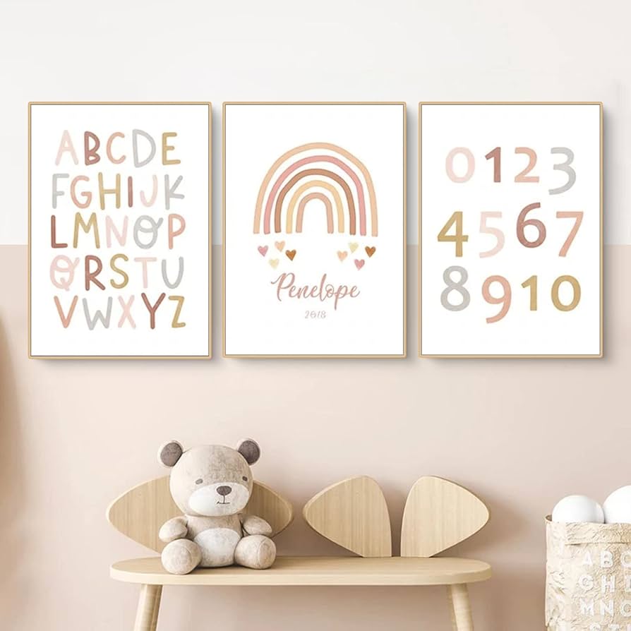 Set Di Poster Arcobaleno Con Decorazione Con Nome Per La Cameretta Dei Bambini, Quadretto Da Parete Per Bambina E Ragazzo, Decorazione Da Parete Per