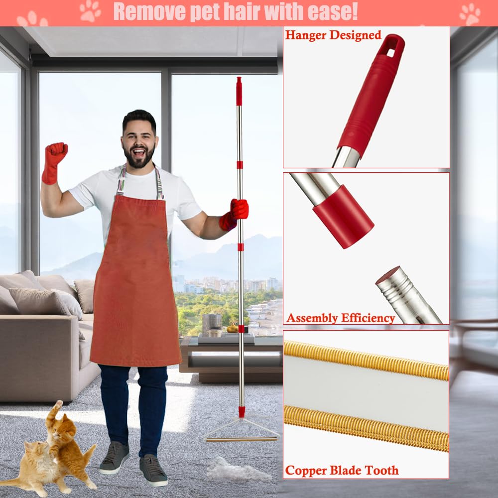Set Di Rimozione Peli Di Animali Domestici Rastrello Per Tappeti Per La Depilazione Di Animali Domestici Manico Lungo Regolabile Scopa Per Peli Di Cani Gatto Riutilizzabile Levapelucchi Di Pelliccia