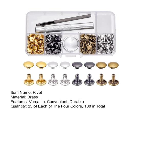 Set Di Rivetti In Pelle Con Doppio Tappo, 3 Misure, Rivetto