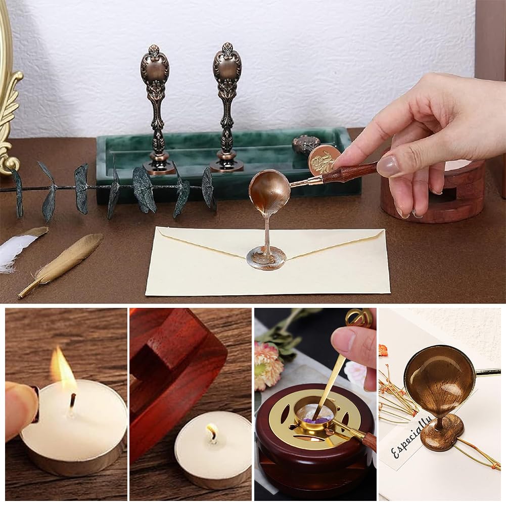 Set Di Timbri Per Sigillo Di Cera Forno Per Lacca Stufa In Legno Massello Fornure Per Sigillo Di Vernice Antincendio Cucchiaio Di Cera Sigillante Cera Per Fusione Pentola Fornure Artigianali