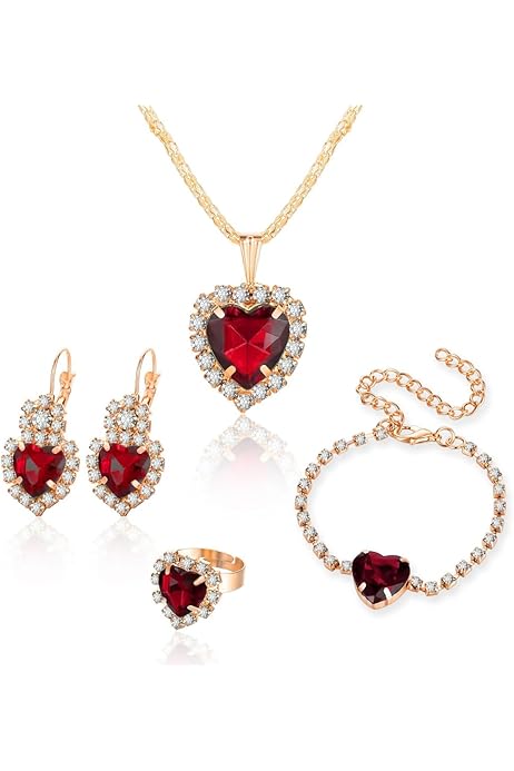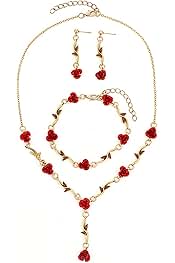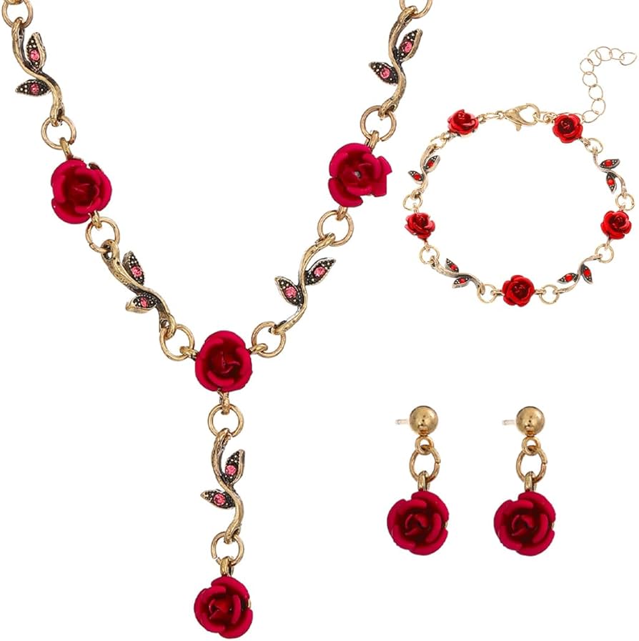 Romantico Fiore Rosa Rossa Gioielli Donna 3-Set Elegante Parure Gioielli Delicato Floreale Orecchini Braccialetto Pendenti Set Per Donne Ragazze : Amazon.it: Moda