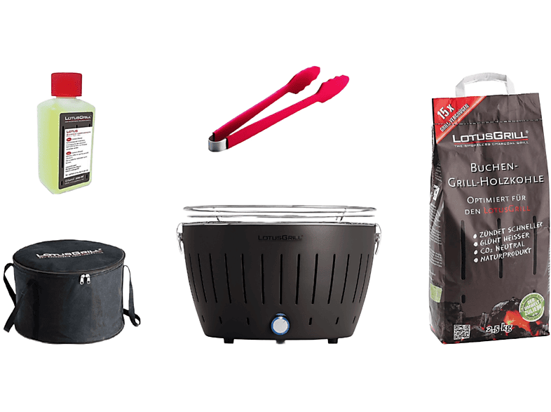 LotusGrill Holzkohlegrill !!NEU Starter-Set KLEIN!! LotusGrill Anthrazitgrau + 2,5 Kg Kohle