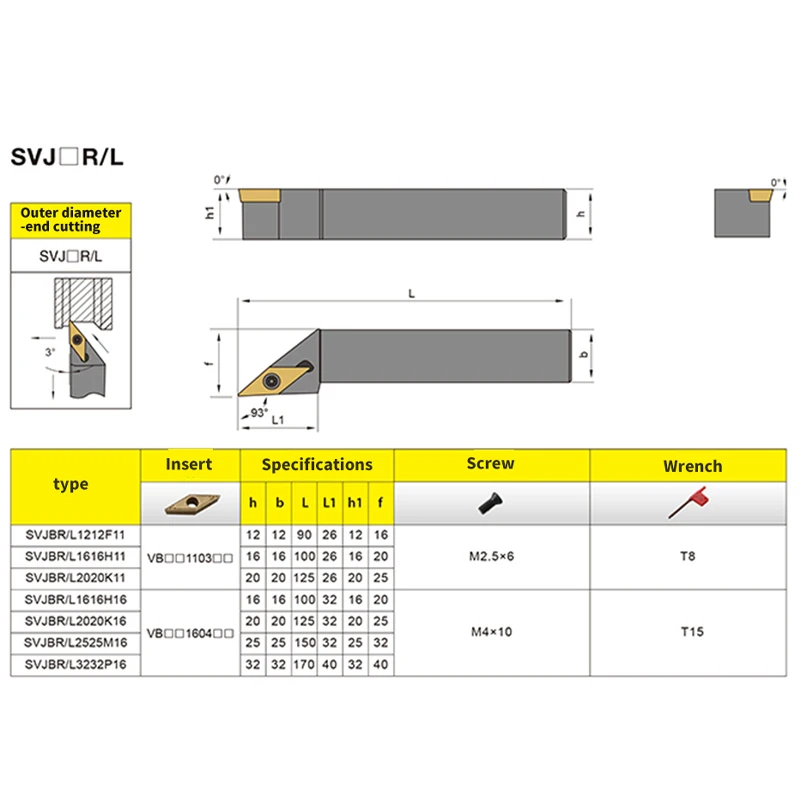 SVJBL1616H16 Inserti in metallo duro Taglierina CNC Tornio Portautensili Utensili di tornitura esterni solidi 20mm 25mm Bar · SVJBL1212H11. 14,00 €14,00 【Accessory】-All the screw, clamp, wrench are universal type and can be replaced 【Material】- Hardened Steel Set SVJBR2020K16 Tool Portautensili Per Tornura Esterna Inserts 【Application】-Tool Holders are Black Oxidized, Great for General Purpose Cutting 【Indexable Inserts】-Positive 35 degrees VBGT VBMT Carbide Insert